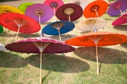 タイでは、各地の特産品を活かした地域振興策として「一村一品運動」(OTOP)が進められており、全国76県7,000以上の村が登録しています。チェンマイ郊外にあるボーサーン村でつくられているカラフルな唐傘や、南部のピューター、中央部のベンチャロン焼きなど、代々受け継がれている伝統の技で地域性を活かした製品を作っています。OTOP製品を販売する店はバンコク市内をはじめ全国にあります。近年では空の玄関口であるスワンナプーム国際空港内にもお店があり、地域の振興と経済の活性化につながっています。