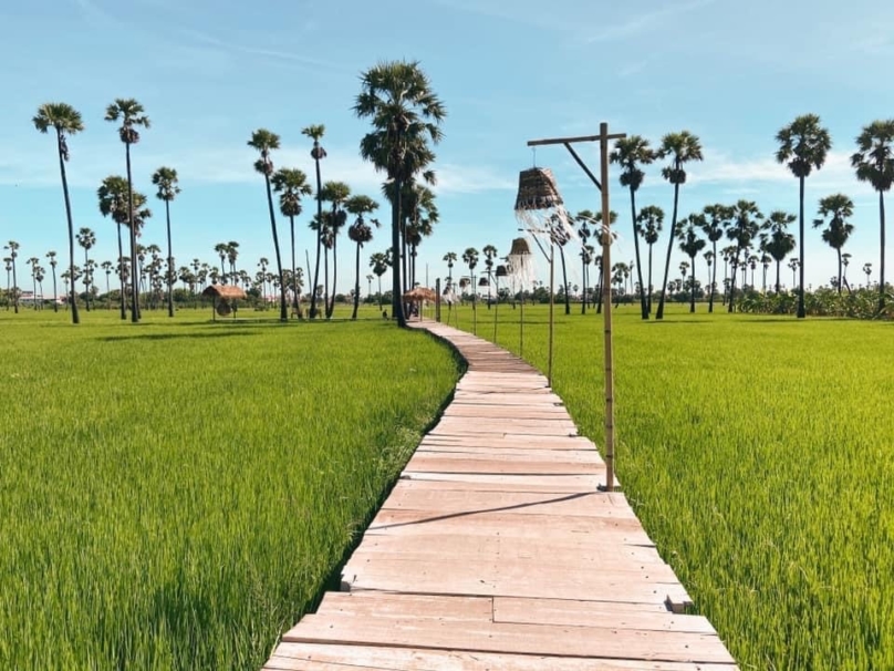 田園に架けられた木道を進んでいくとブランコやタイの東屋(サーラー)などもあり、カメラ片手に散策も楽しめます。カフェメニューのほかに、軽食やタイ料理も提供しています。