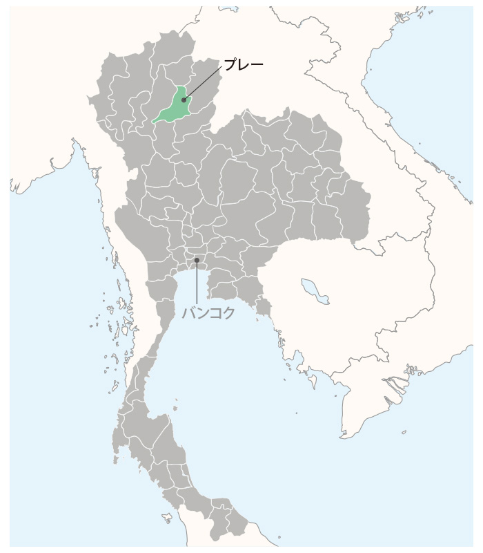 プレーは自然も豊かで、浸食してできた奇妙な形の土壌の堆積であるペ・ムアン・ピーや、ラフティングとトレッキングが楽しめるメー・ヨム自然公園はエコツーリズムでも知られた場所です。また、プレー県の藍染め(インディゴ)は、特産品としても人気があります。