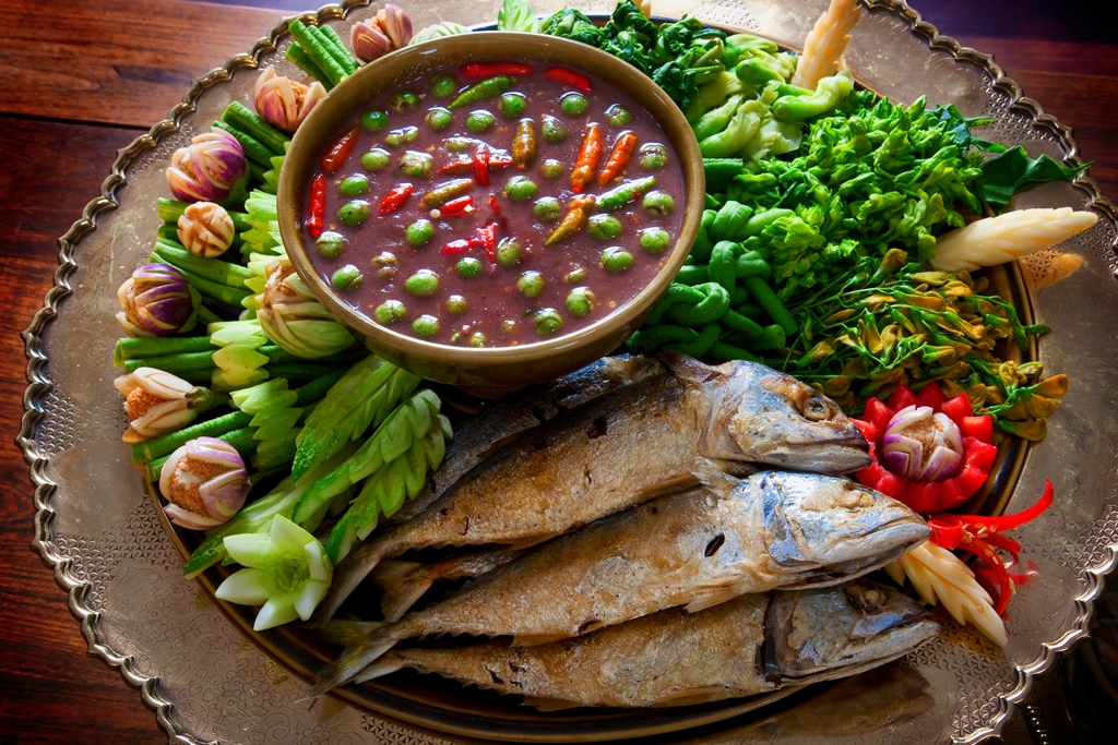 料理に使われる様々な野菜は、自宅の庭や市場で簡単に手に入るものばかりです。新鮮な野菜にタイ料理の定番辛みそディップのナムプリックを付けて食べる。そんなシンプルな一品にもタイ料理の魅力がたくさん詰まっています。クリーミーで甘いココナッツクリームやココナッツミルクも簡単に手に入るため、様々な食材、ハーブ、調味料と混ざり合うことで魅惑的な一品になります。