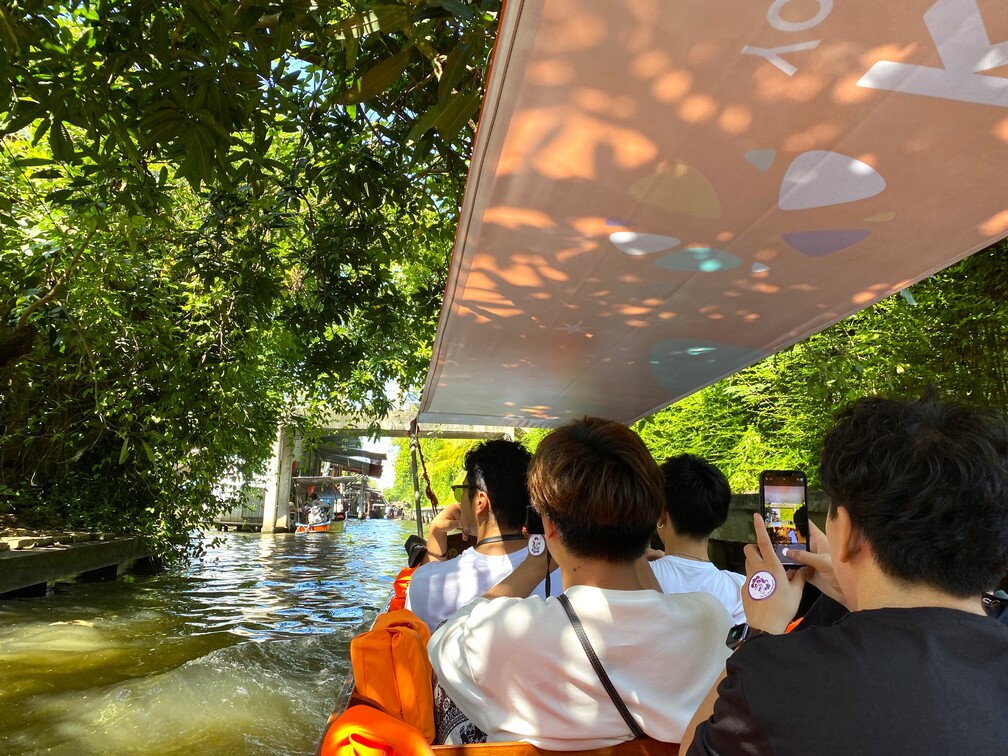 ▼ 初めて訪れるメンバーも多かった水上マーケットは、「タイらしい」と五感で感じることの大切さをあらためて実感させてくれました。舟を漕ぐ物売りの人達も元気いっぱいで、ローカルフードやフルーツはどれもおいしそう。舟ですれ違う観光客と”Hello!”とあいさつしながら、心で通じ合う今まさにこの地にいる幸せを共有。