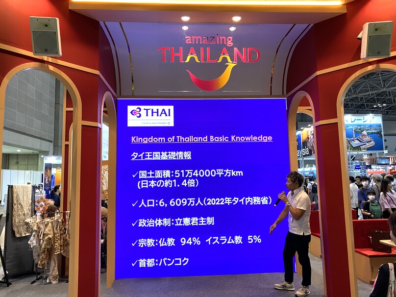 ▼ ブース内のステージでは、毎月オンラインで実施している「タイ旅座談会」をオフラインで行いました