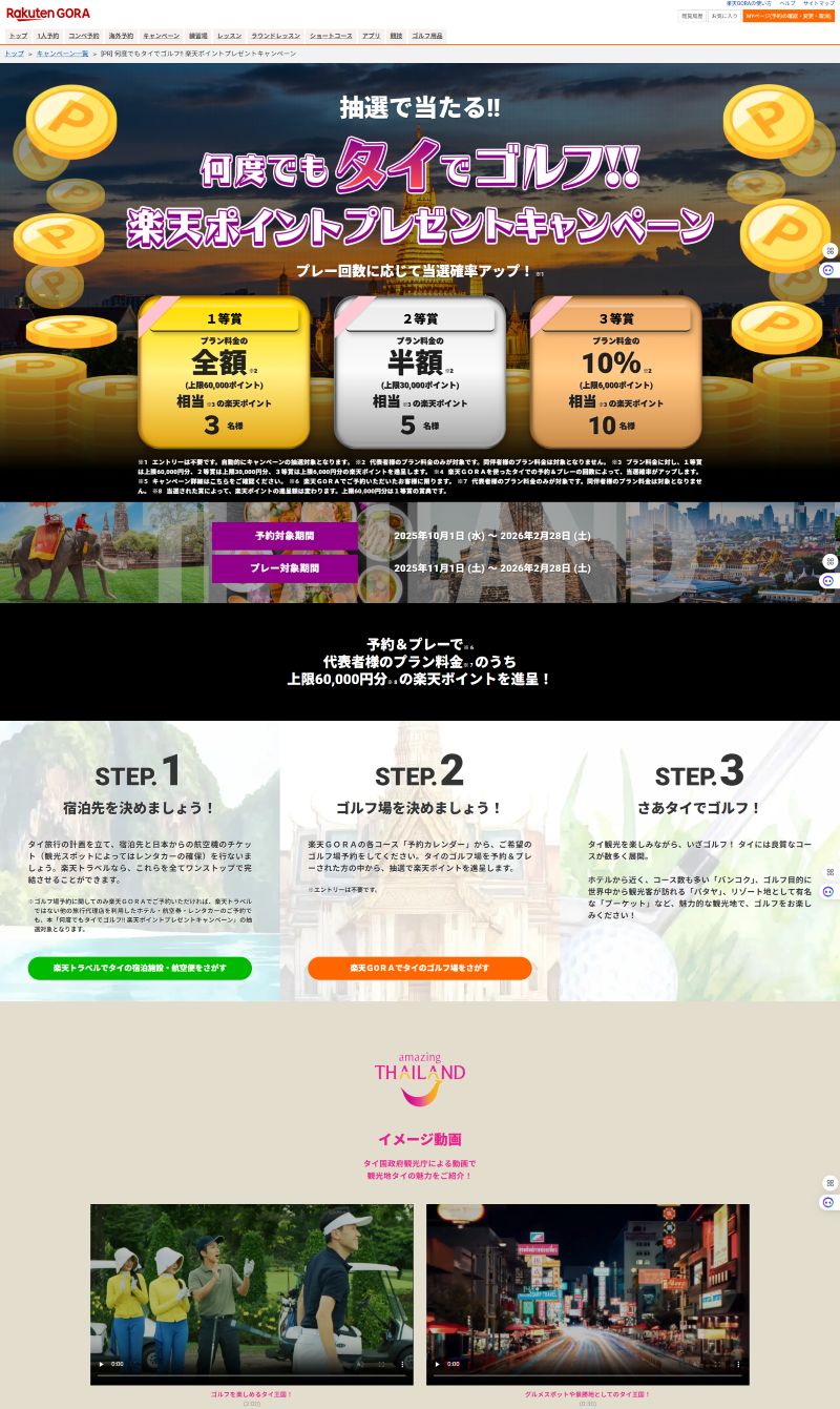 ニュースNews 【ゴルフ】何度でもタイでゴルフ!! 楽天ポイントプレゼントキャンペーンスタート タイ国内 2025/10/06 Tweet タイでゴルフを楽しみながら楽天ポイントをゲットしよう! キャンペーンサイト『何度でもタイでゴルフ!! 楽天ポイントプレゼント』 Tweet 前へ ニュース一覧 次へ