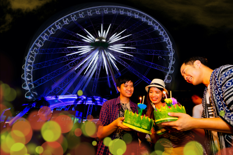 「ロイクラトン」は、灯籠(クラトン)を川に流す、タイの人々の間で古くから続いている風習で、神への信仰や人と川の深い関わりを現し、「水の祭典」とも呼ばれています。毎年タイ式陰暦11月の満月の夜、川の女神 “プラ・メー・コンカー”にこの一年水を使わせてもらったことを感謝し、また同時に川を汚してしまったことを謝罪する行事です。タイ各地でロイクラトン祭りが開催されています。