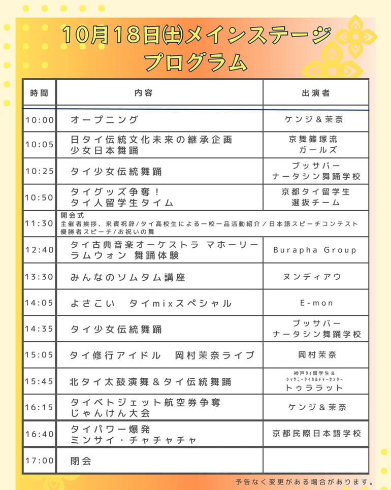 【京都】10/18-19 日タイカルチャーフェア in 京都2025 開催
