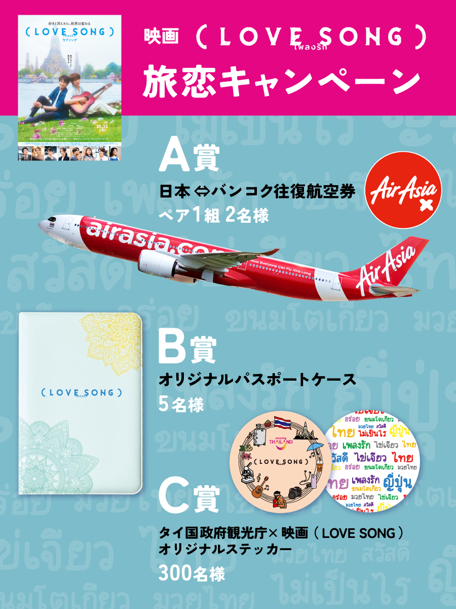 - 映画『(LOVE SONG)』公式X(@movie_lovesong)とタイ国政府観光庁公式X(@AmazingThaiJP)の両方をフォロー
