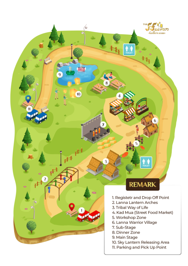13:30~17:30 Central Chiang Mai(1階インフォメーション付近)にて受付・チケット引き換え 16:00~17:30 専用シャトルにて会場へ移動(約45~60分) 17:00~19:00 文化体験・マーケット・クラトン流しなど 19:00~20:30 光と音のショー&ランタンリリース・ディナー 21:00頃 終了後、チェンマイ市内へ送迎 ※天候や運営上の都合により、内容が変更となる場合があります。 |