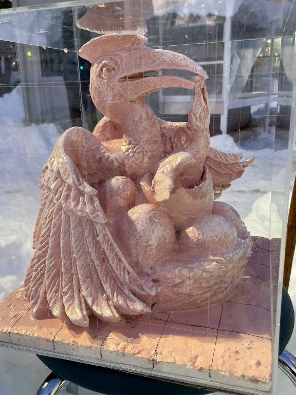 サイチョウの輪郭がよりくっきりと現れてきた雪像