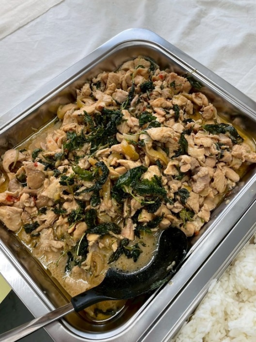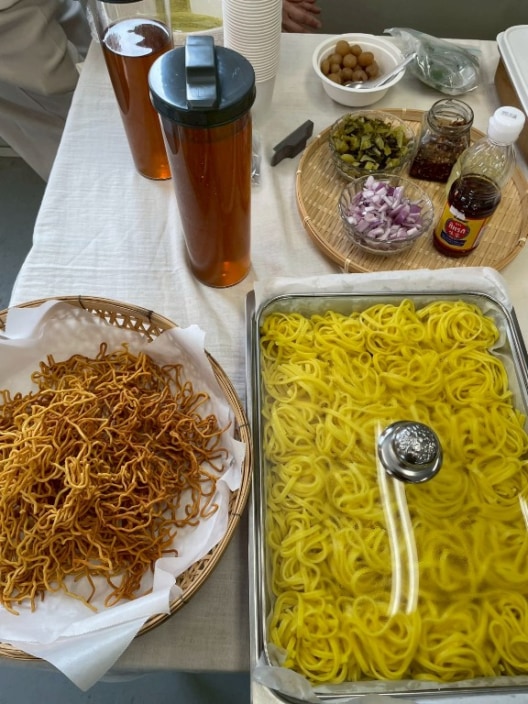 この日のランチはタイ国政府観光庁がホスト。各国のアーティストにタイ料理をふるまいました。タイ北部のご当地カレー麺「カオソーイ」とホーリーバジルと鶏肉炒め「ガパオ」、そして世界三大スープの一つでUNESCOの無形文化遺産に登録された「トムヤムクン」。