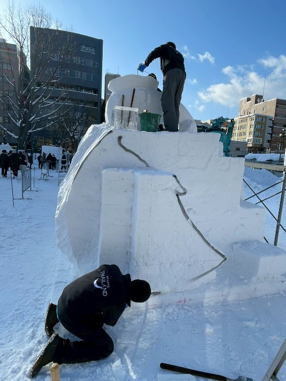 タイチームは第5位という成績を収めました。多くの皆さまからの温かいご声援、誠にありがとうございました。各チームが制作した全10基の雪像は、2月11日(水・祝)まで、大通会場11丁目にてご覧いただけます。