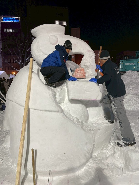雪像制作は本日最終日、完成に向けた作業が行われました。