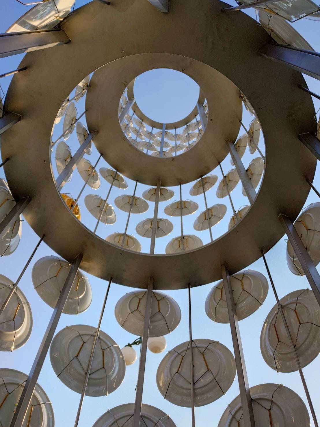本プロジェクトで使用されるベンジャロン皿は、250年以上の歴史を持つ日本の化学商社・伊勢久株式会社のタイ法人「タイ・イセキュウ (Thai Issekyu)」の協力により提供されました。タイ最高峰の職人によって一枚一枚手描きされた40cm、30cm、20cmの異なるサイズの皿が、ステンレス製のシリンダー構造体の中で重なり合い、緻密な光のグラデーションを生み出します。