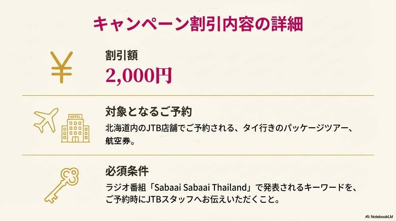 JTB × タイ国政府観光庁 × FM NORTH WAVE 北海道限定キャンペーン!合言葉でJTB割引特典をGET