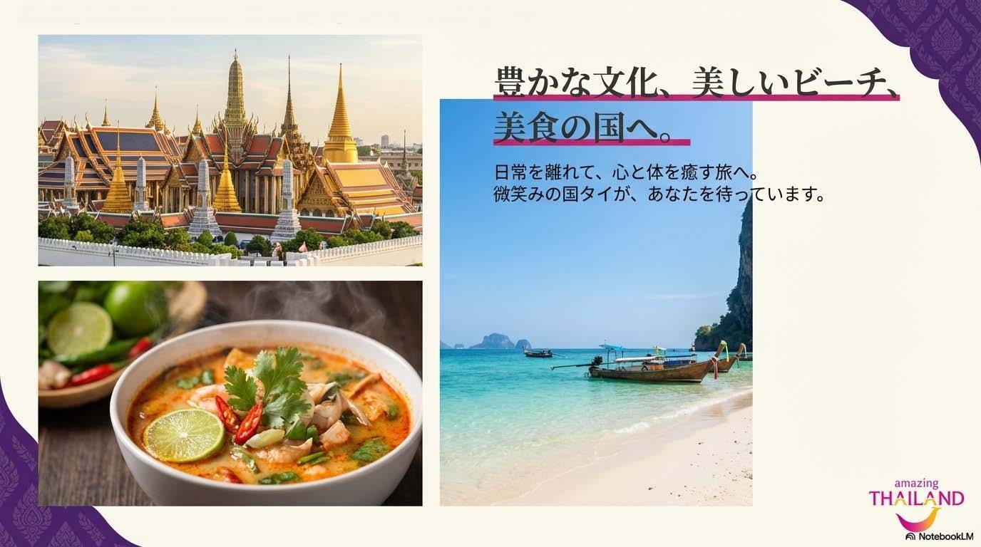 煌めく寺院、エメラルドグリーンのビーチ、そして五感を満たす美食の数々。 微笑みの国・タイには、今私たちが求めている「最高の癒やし」が待っています。