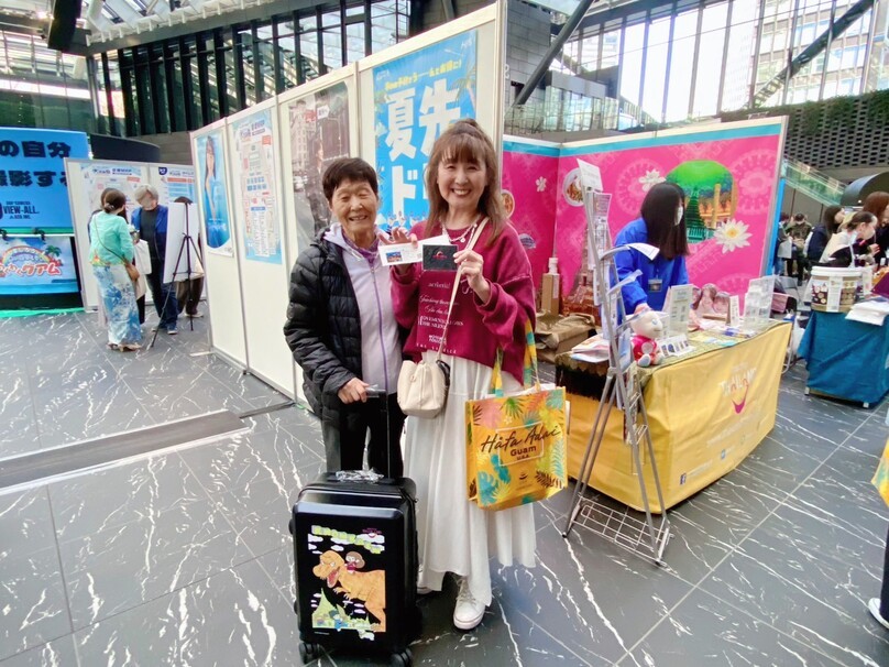 ▲ 見事スーツケースとタイ料理またはマッサージに使える5,000円のクーポン券を引き当てたラッキーファミリー