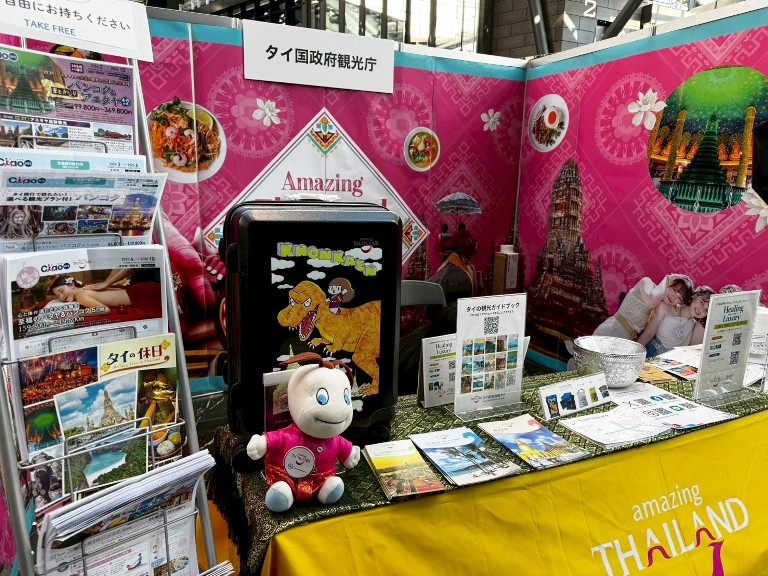 会場内には各国の観光プロモーションブースが並び、その中でもタイ国政府観光庁(TAT)のブースは、タイの「癒やしの旅」をテーマにした展示で来場者の注目を集めました。