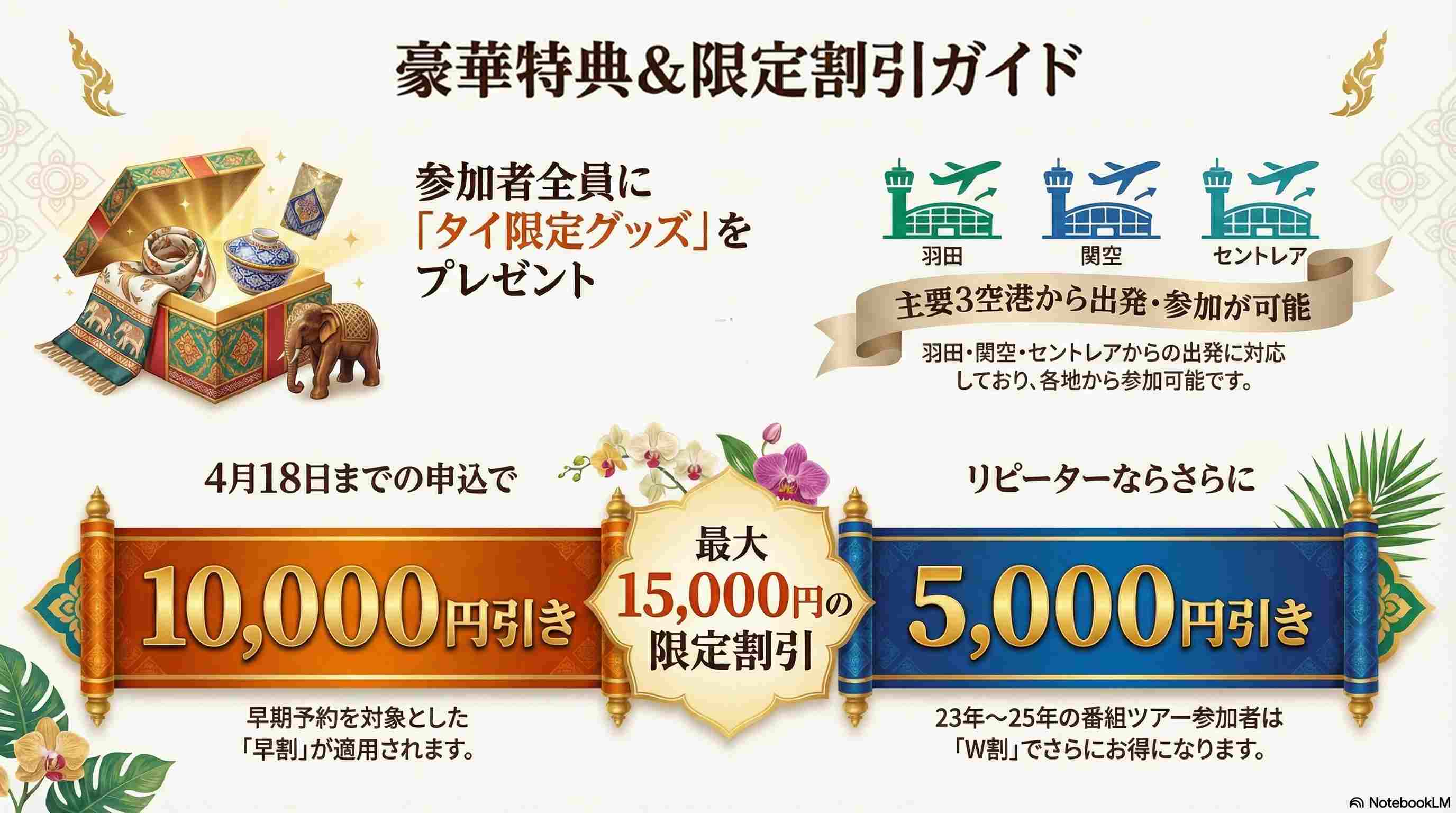 • 2023年から2025年の番組ツアー参加者様はさらに5,000円引きのW割!