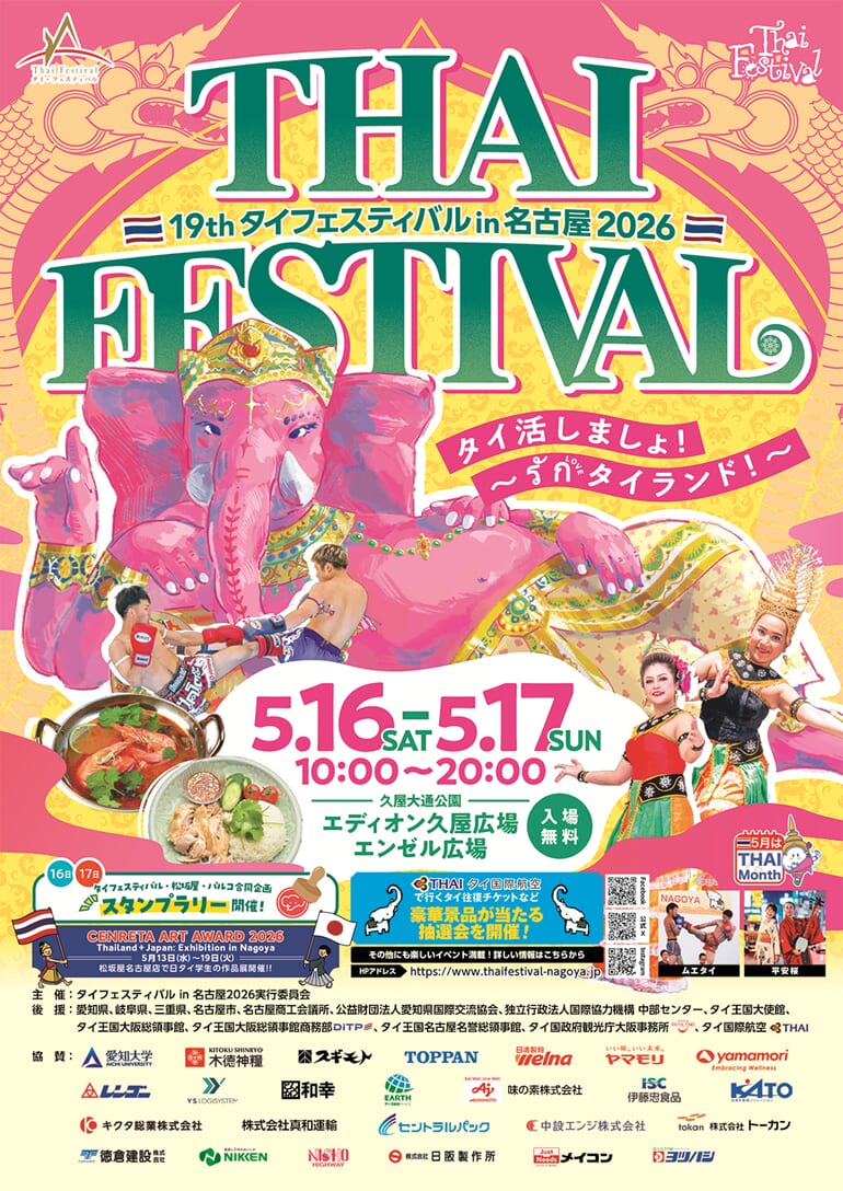 2026年5月16日(土)・17日(日)、「第19回タイフェスティバルin名古屋2026」がエディオン久屋広場(久屋大通公園 久屋広場)にて開催されます。
