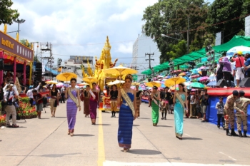 キャンドル・フェスティバルは、毎年7月頃、すべての仏教僧が寺院からの外出を禁止されるカオ・パンサー(安居入り)の時期に、トゥン・スィー・ムアン公園で開かれるお祭りです。地元の郷土職人によって、寺院に寄贈される宗教的な捧げものである蜜蝋キャンドルの工芸品が製作され、お祭りの期間中、華麗な蜜蝋キャンドルのパレードが行われるのが見どころです。