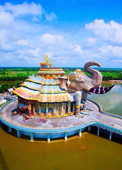 寺院内には、タイルや美しい模様で飾られたウボソット(神聖な儀式などを執り行う礼拝堂)、ナーガの導きの先にあるラーマ9世の生誕84年を記念して水辺に象をモチーフにして建てられた、テープ・ウィッタヤーコム・ホール(タイ語アーカーン・パリスッタパンヤー/อาคารปริสุทธปัญญา/Ahkarn Parisuddhapanya)があります。屋上には、リーラー・スタイル(Leela Attitude)の仏像とルアンポー・クーン像が立っています。建物の周囲は、タイルに絵が描かれた2,000万を超えるモザイクで装飾されています。