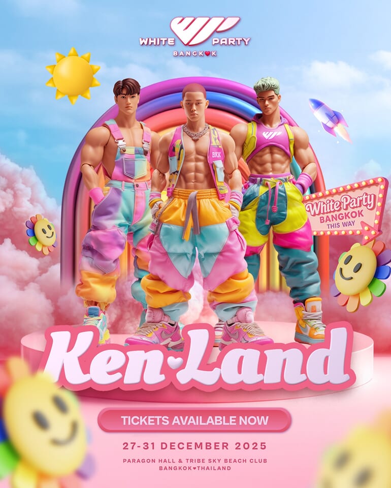 「ホワイトパーティ・バンコク」は、年末年始に開催されるタイ国内最大級のゲイ(LGBTQ+)向けの音楽ダンスパーティです。世界中のLGBTQ+の人々が一同に会する大イベントであり、世界50か国以上・20,000人を超える人々が参加します。最新テクノロジーを駆使したステージセットに加え、名立たる音楽DJやパフォーマー達が会場を盛り上げ、新年を祝います。